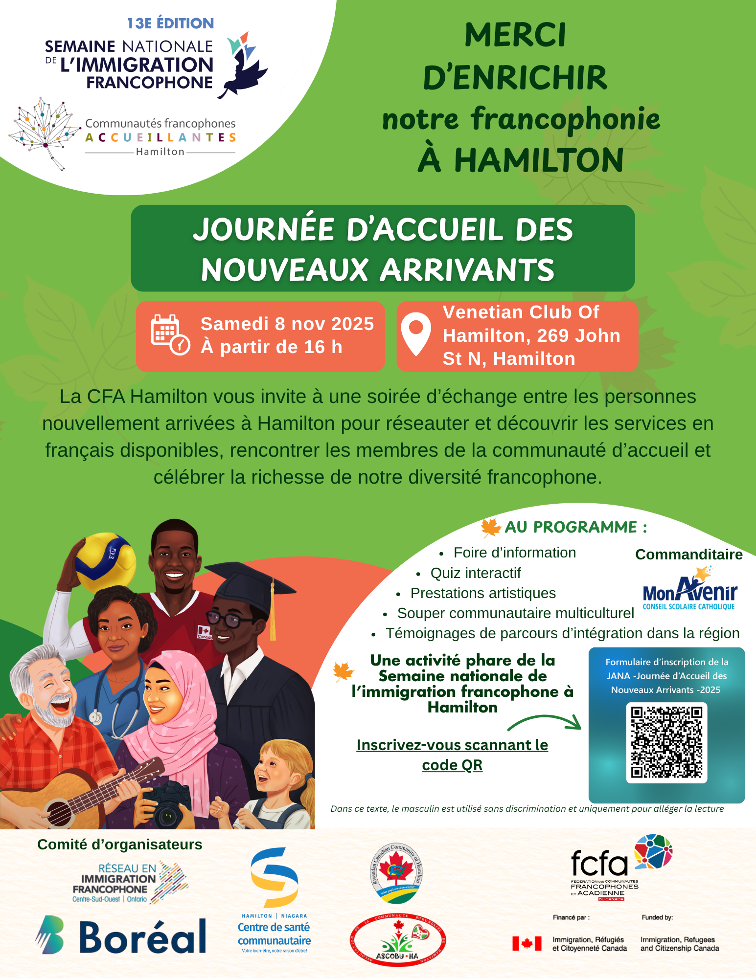 Initiée par les communautés burundaise et rwandaise, la JANA est aujourd’hui portée collectivement par plusieurs associations ethnoculturelles francophones (congolaises, ivoiriennes, camerounaises, etc.), avec l’appui de la CFA Hamilton. Cet événement a grandi au fil des éditions pour devenir un rendez-vous incontournable de l’accueil et de l’intégration des nouveaux arrivants d’expression française à Hamilton.
