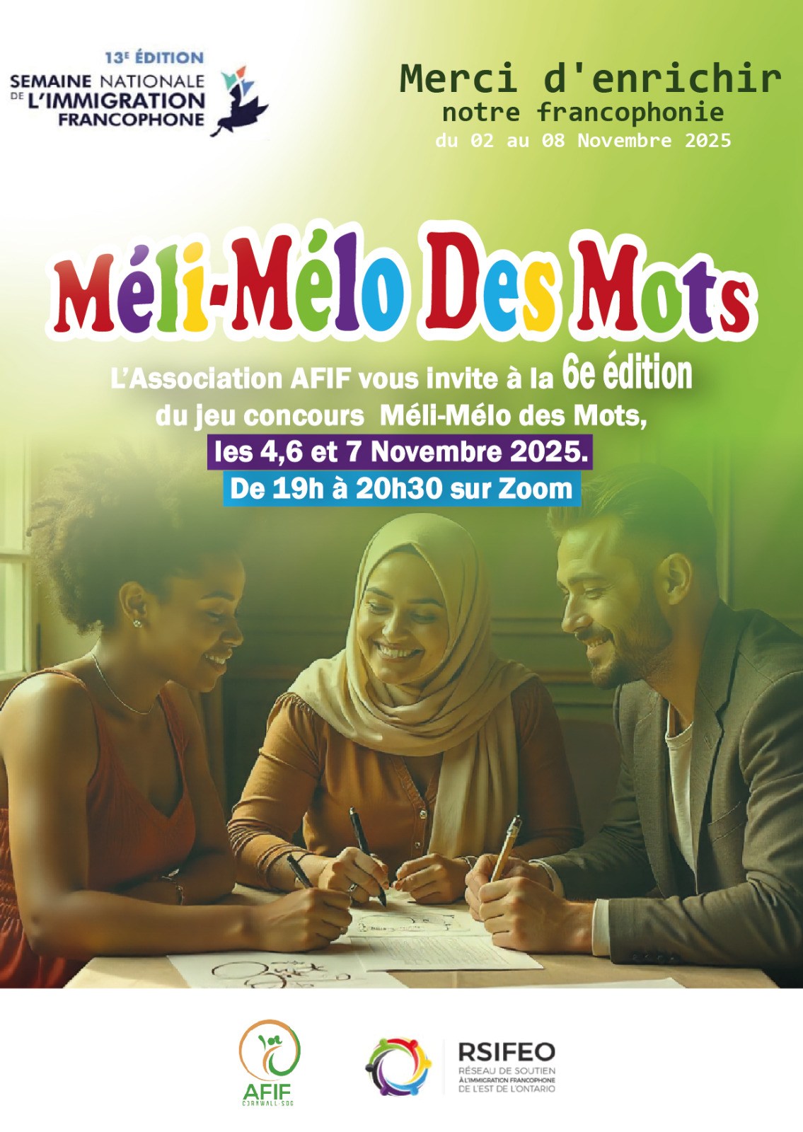 À l’occasion de la Semaine nationale de l’immigration francophone 2025, l’AFIF vous invite à un moment unique de partage, de rires et de découvertes autour des mots qui nous rassemblent